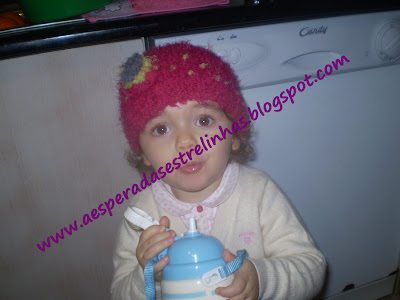 Para comer outro guerra, se for da sopa que eu faço é uma gritaria, se for sopa de boião é uma maravilha. Segundo prato tem que comer com a mão, se lher der uma colher para a mão não come nada joga tudo para o chão!!!! Ai que faço eu á minha vida, e tão teimosa!!!! A minha cabeça está cada vez mais preenchida de cabelos brancos, porque será?????
